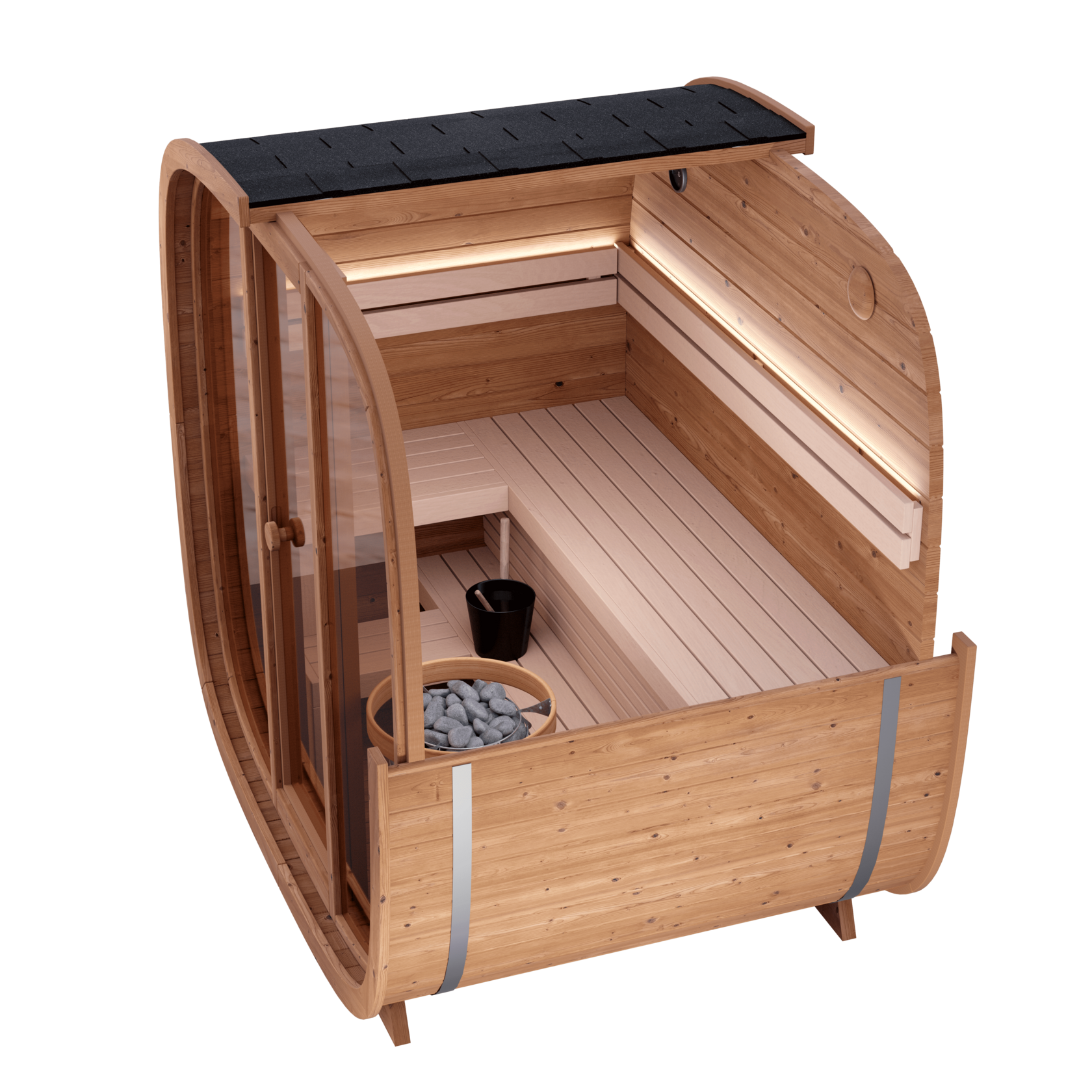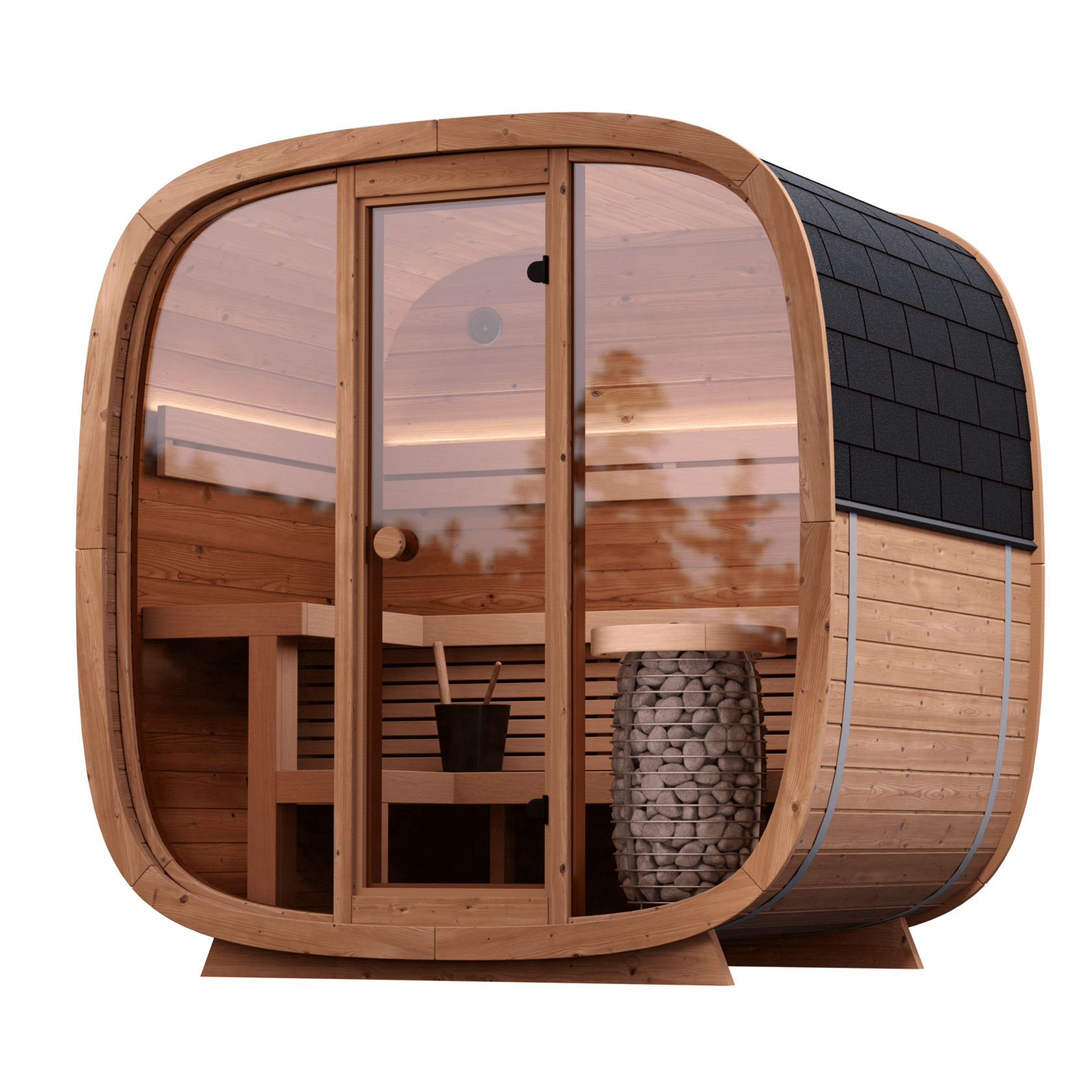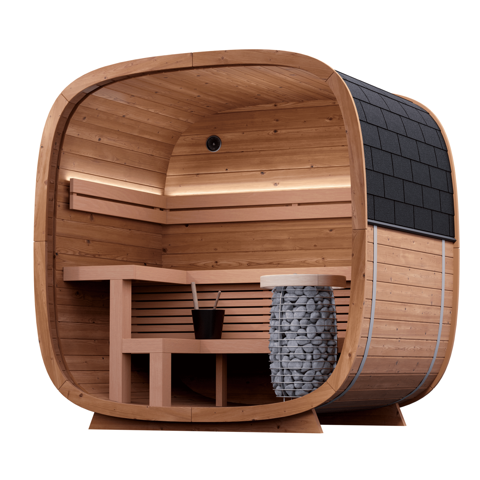 Dice Pocket to Twoja prywatna oaza spokoju. Jej przemyślana konstrukcja maksymalnie wykorzystuje każdy centymetr, stając się nie tylko częścią codziennej rutyny wellness, ale także stylowym akcentem architektonicznym. Zaprojektowana z dbałością o detale, sauna zachwyca eleganckimi, dwupoziomowymi ławkami z najwyższej jakości drewna olchowego oraz szeroką leżanką.
