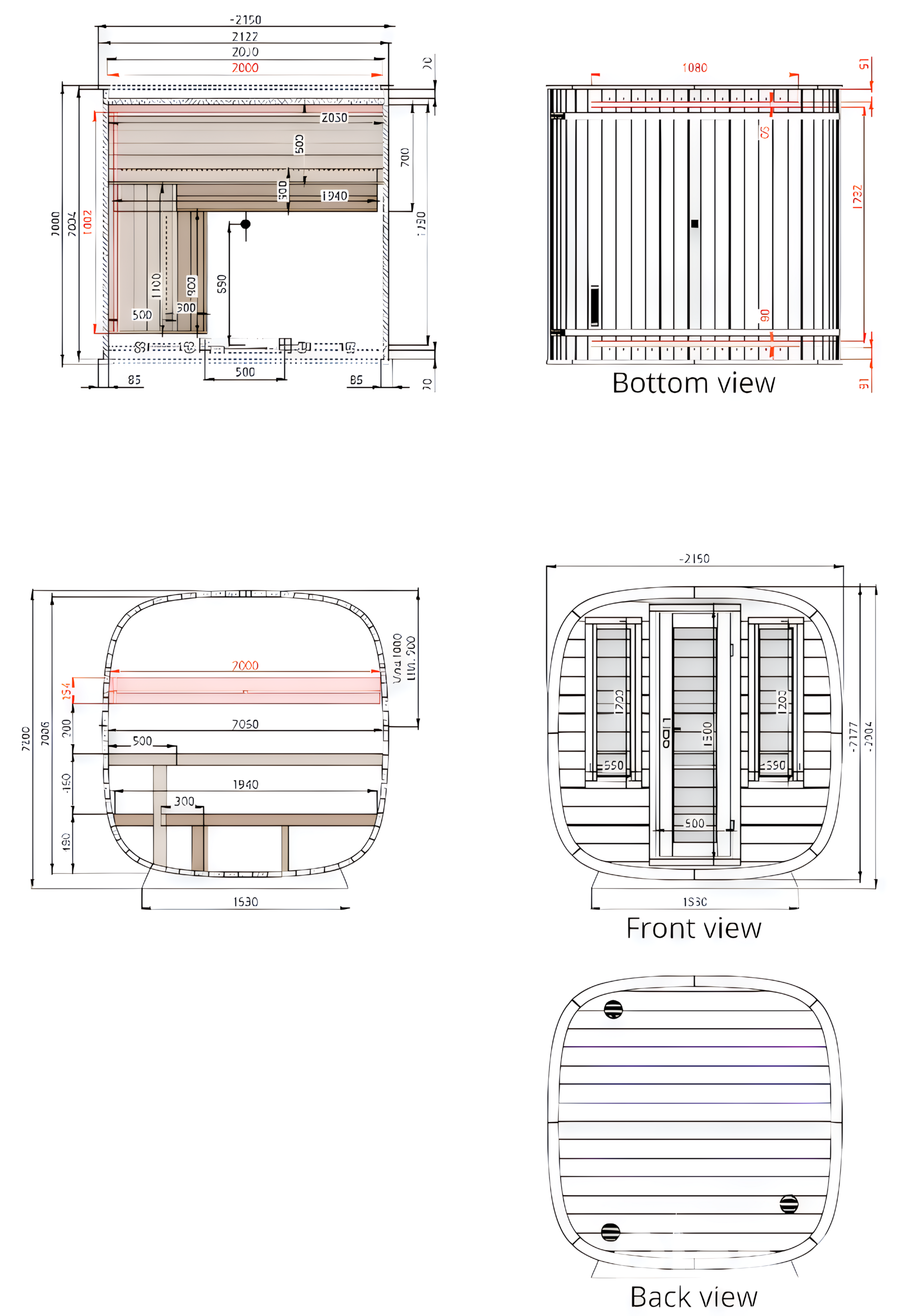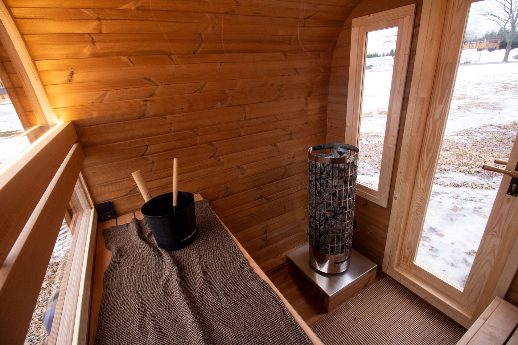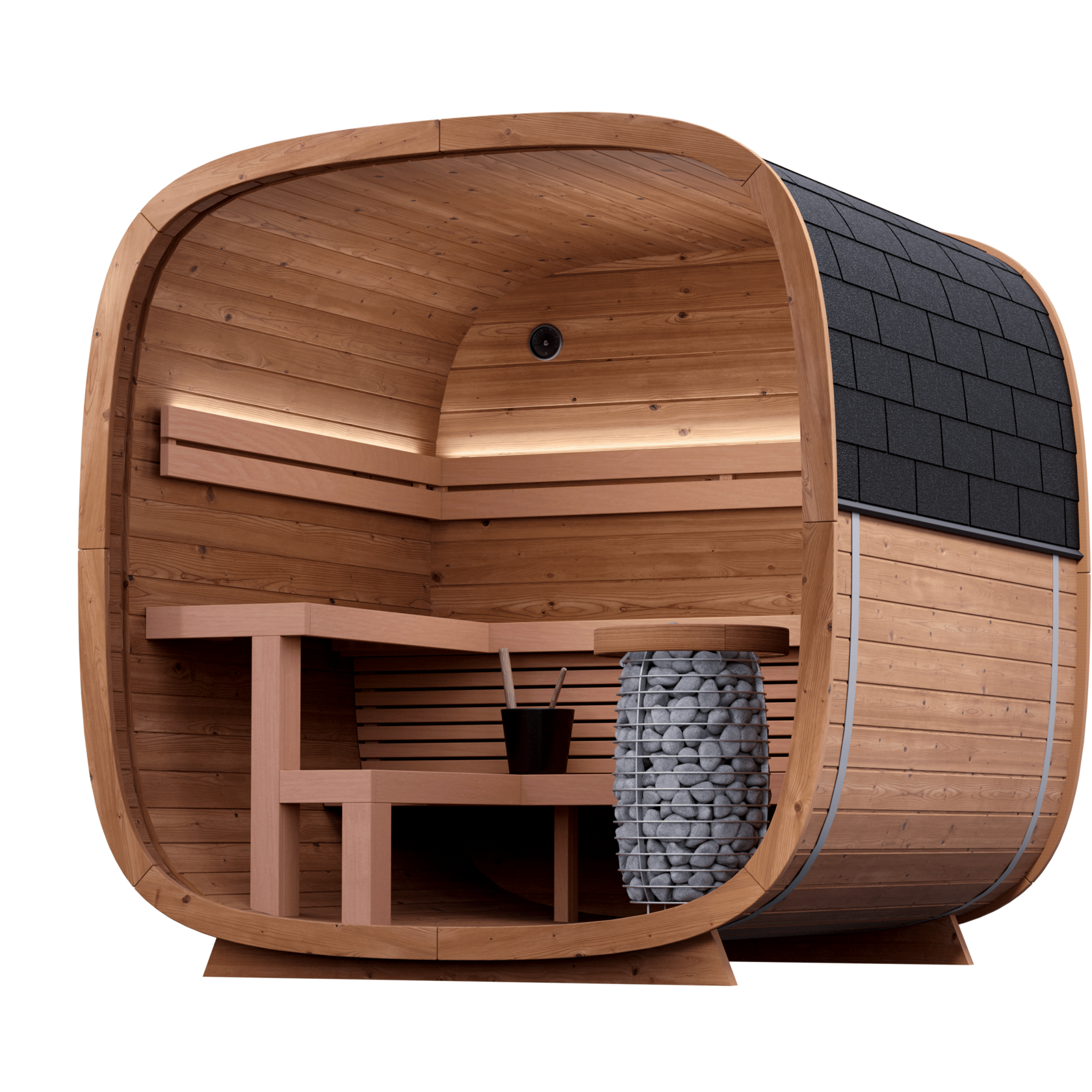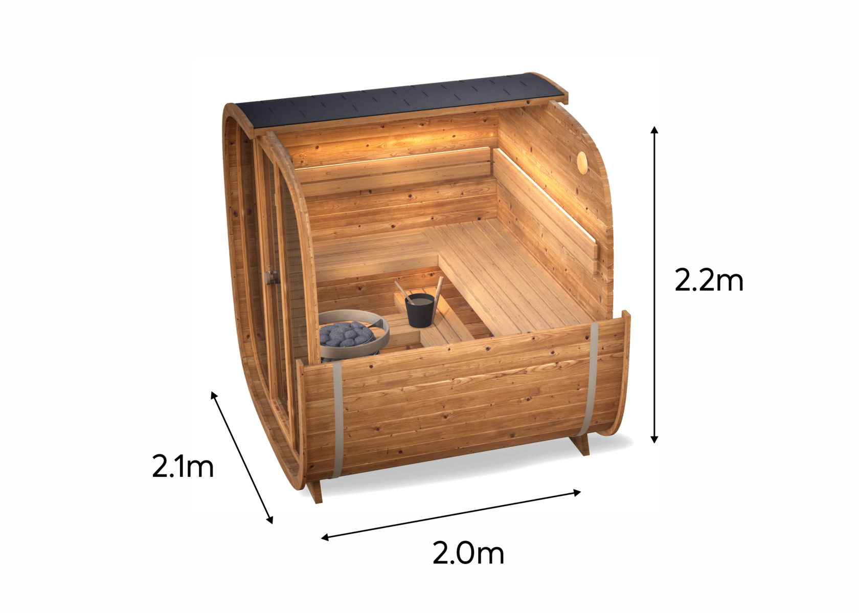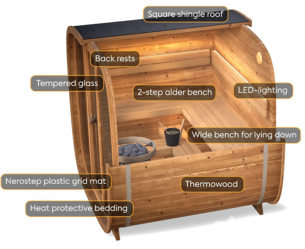 | Materials | Sauna shell - Thermowood Door/Front - Tempered Glass |