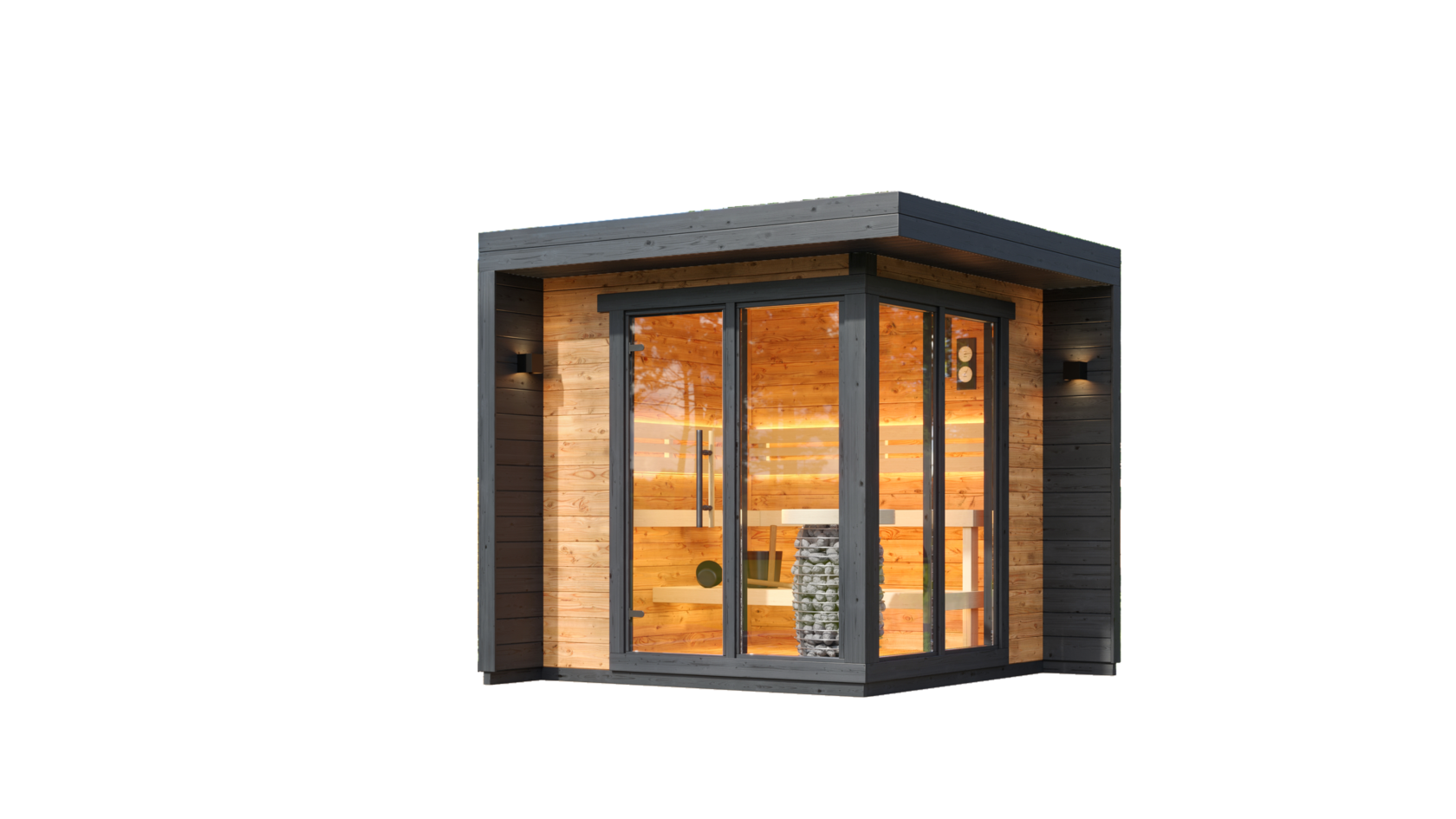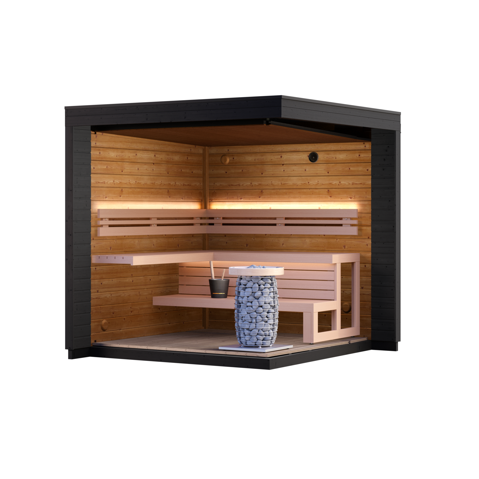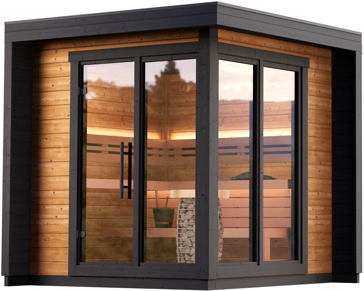 Model Patio S to kwintesencja nowoczesnej architektury saunowej. Flagowy model o geometrycznym, kwadratowym rzucie. Leil Saunas Patio S wyróżnia się szerokimi przeszkleniami, które otwierają widok na naturę. Komfortowa przestrzeń dla 4 osób, wykonana z mistrzowską precyzją w Estonii z drewna Thermowood.