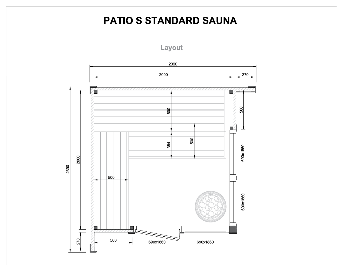 | Wymiary sauny | 2000 szer. x 2000 gł. x 2200 wys. mm |