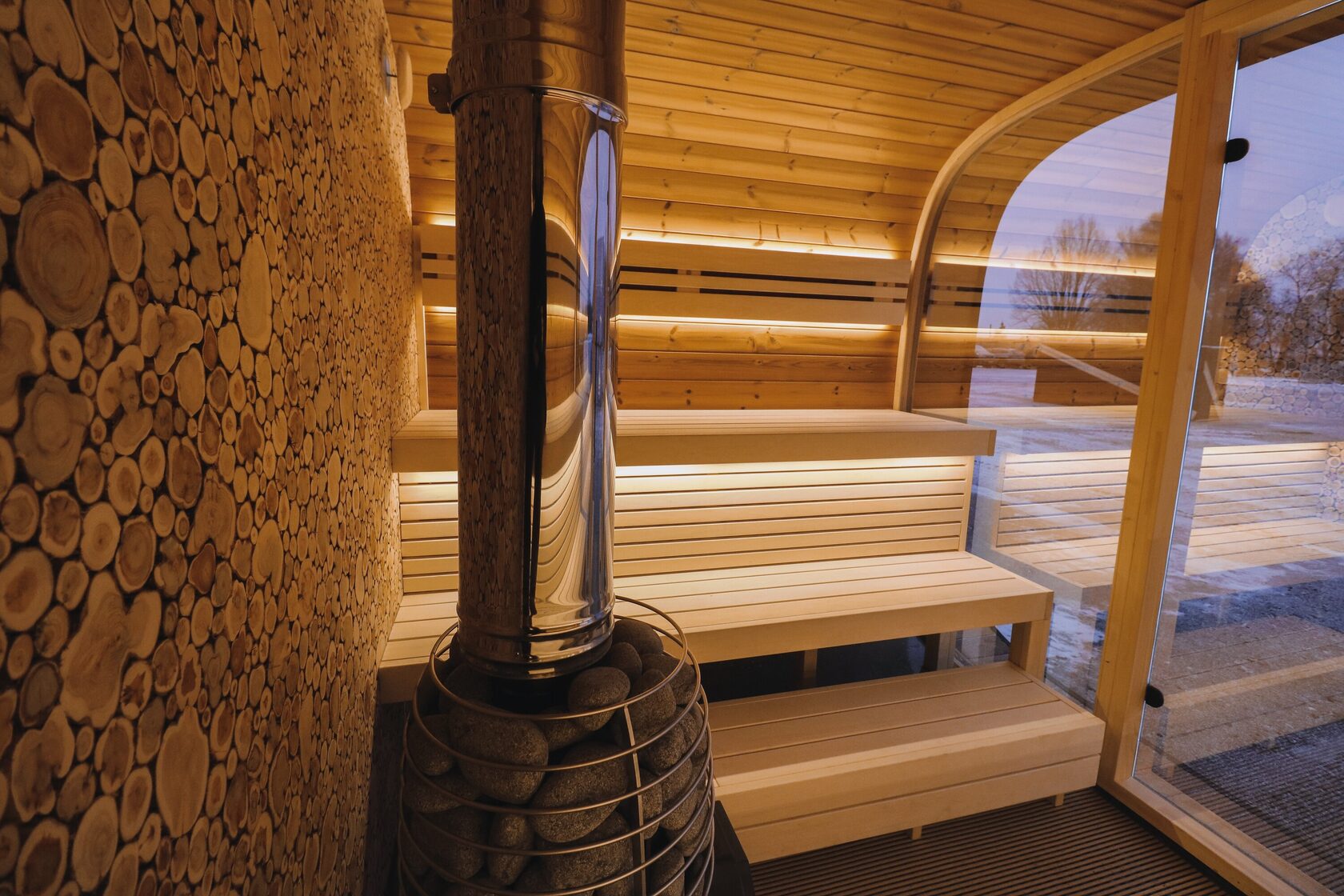 Round Cube Single, o imponującej powierzchni wewnętrznej ponad 7 m², komfortowo mieści od 6 do 8 osób, stając się idealnym centrum domowego wellness. Dla poszukujących autentycznych doznań, szczególnie polecamy połączenie tej sauny z piecem opalanym drewnem.